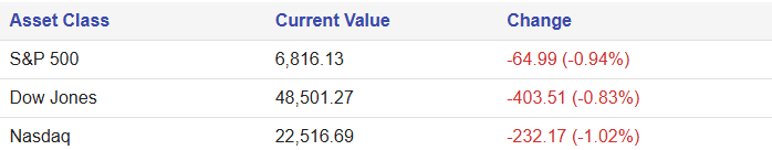 A sudden global tariff shock and intensifying concerns about AI disruption sent shockwaves through financial markets today. Investors scrambled out of equities and crypto, fueling a sharp rally in gold and Treasuries as risk aversion reached its highest levels in months. With volatility spiking and sector leaders tumbling, the market narrative has shifted decisively toward caution, capital preservation, and a reevaluation of growth prospects. Key Market Themes: Tariff Turbulence: Sweeping new...