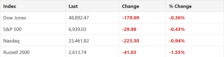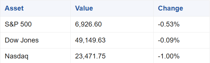 Markets closed lower as a wave of uncertainty swept across asset classes, fueled by the surprise appointment of Kevin Warsh as the next Federal Reserve Chair and a dramatic plunge in gold and silver prices. While tech titans like Nvidia stumbled on strategic setbacks, pockets of strength emerged in telecom and crypto, revealing a market at a crossroads as investors recalibrate for the next phase. Key Market Themes: Fed Leadership Transition: Warsh’s nomination stirs speculation on future rate...